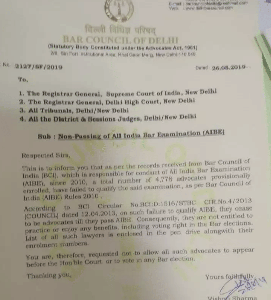 आपको बता दें कि दिल्ली की विभिन्न अदालतों में आवेदन करने के बाद वकालत करने के लिए एआइबीई पास करना जरूरी है।
